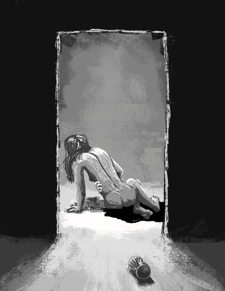 Dripping water on the filthy carpet, Whiplash hobbled gingerly to the bed. Something she didn’t want to think about dripped down her legs. She felt fucking wretched.